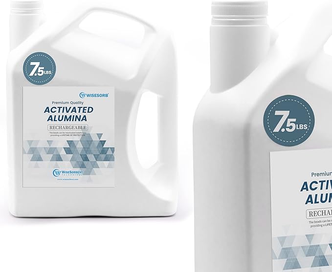 - 【Activated Alumina】 utilize premium quality raw material with an extremely porous structure and high surface area-to-mass ratio, high strength against crushing and very stable physical and chemical characteristics, even in high temperature and corrosive environments. At 77℉/25℃, RH90%, it can absorb more than 30% of its weight in water vapor. Each bead is 3 – 5mm in size.