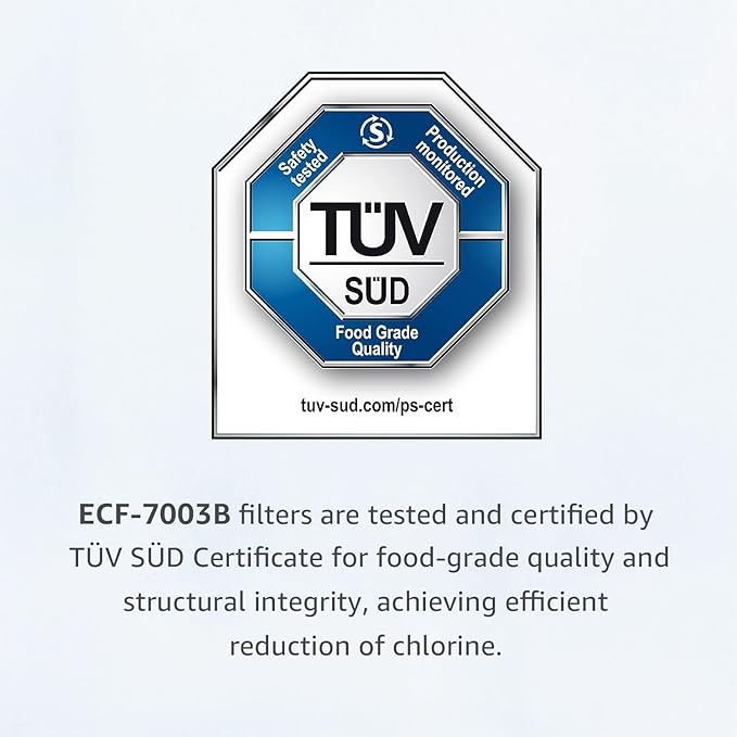 - [Authoritative Certification] This filter has passed the authoritative certification of TÜV SÜD for safety of BPA-free materials, and it can effectively reduce chlorine and odor in water.