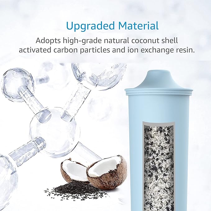 - [Filter Life Replacement Reminder] Its visual time window design on the cap allows you to monitor the filter lifespan on real time, reminding you of timely replacement. Note: Before use, please soak the filter in water to ensure that the filter is totally immersed in water for a few minutes until there is no bubbles.