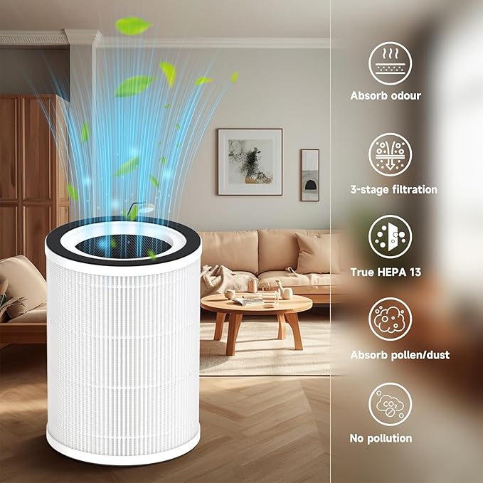- 【3-in-1 Filtration】--High-efficiency 3-in-1 filtration systems includes a fine preliminary filter, H13 medical grade true HP filter and activated carbon filter.
