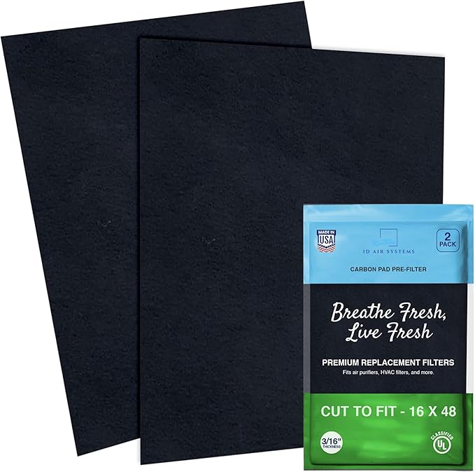 Cut To Fit Air Filter - Carbon Pad Pre Filter for Air Purifiers, AC, Furnace, Trash Cans and Dust, 1/6" thick, 16" x 48" Sheets (2-pack)