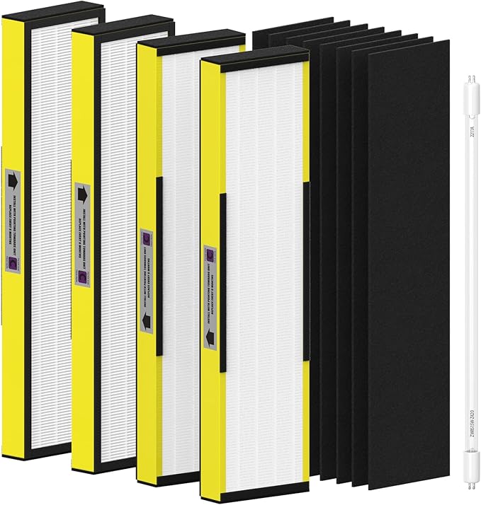 4 Pack FLT5000 True HEPA Filter C + LB5000 UV Bulb Compatible with AC5000/AC5000E/AC5250PT/AC5350B/AC5350BCA/AC5350W/AC5300B & CDAP5500BCA/CDAP5500WSP