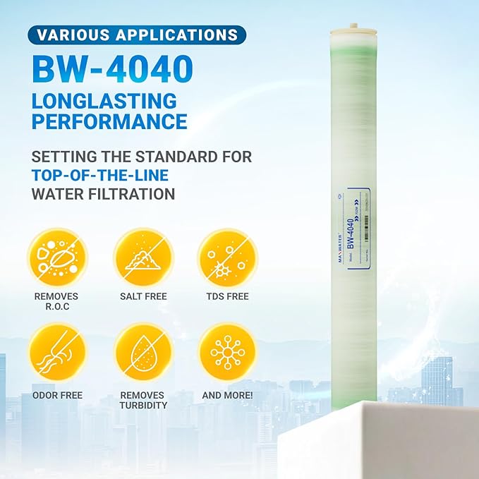- Versatile & High Capacity: Designed for diverse applications such as car washes, whole-house filtration, and industrial use, the BW-4040 membrane offers a reliable capacity of 2,400 GPD, ensuring optimal performance and compatibility with leading models like AG4040FF, RE4040-BE and others, making it a versatile solution for your water purification needs.