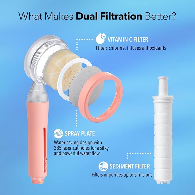- MULTI LEVEL FILTRATION - The Barumi Pluo Vitamin C Handheld Showerhead features dual filters that eliminate chlorine and harmful particles from tap water, delivering silky, purified water for soft skin and lustrous hair.