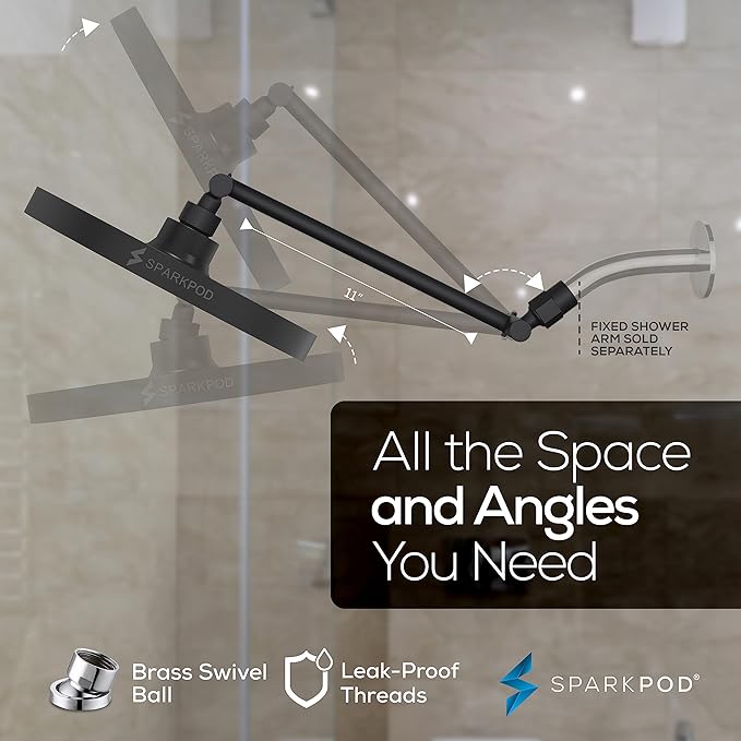 - Ideal shower head extension arm: SparkPod's Shower Arm has a rotating elbow which allows for maximum shower coverage. Combined with our energy saving shower head, you will have the perfect shower set up for years to come.