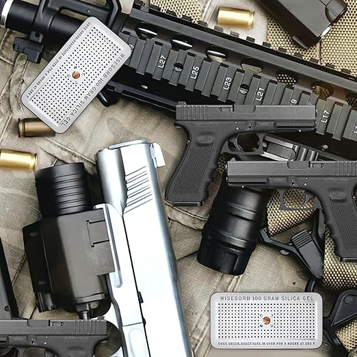 - 【Great Absorbing Capacity and Multi-Purpose】: Silica gel can protect up to 120 cubic inch each One grams of any enclosed / sealed storage space such as safe, ammo cans, ammo boxes, tool box, 3d printer filament sealed plastic storage box, weapon case, closet and provide a better solution keep moisture from guns, important papers, legal papers, collectibles, books, jewelry, photo album, shoes, camera lens, expensive camera equipment, toys, leather clothing, ammo, photo equipment.