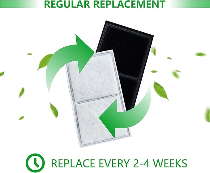 - Regular Replacement: To ensure the health of your pets, please maintain the habit of changing the filters for the large dog water fountain bowl dispenser every 2-4 weeks. The package includes 12 packs of pet fountain filter replacements for better and longer-lasting filtration. It is compatible with drinkwell pet water fountain filters replacement and drinkwell drink well mini replacement carbon filters