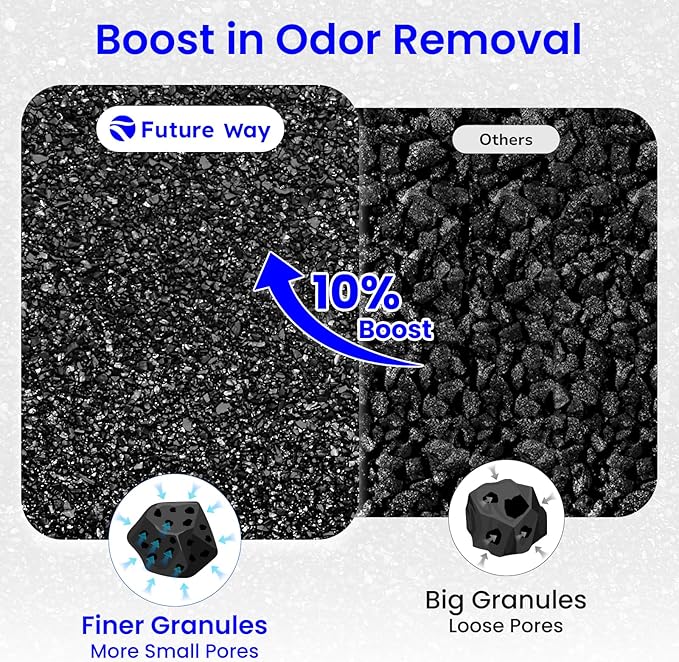 - Upgraded Activated Carbon Filter: Made with finer, highly porous carbon, delivers 10% stronger adsorption than larger carbon particles, effectively capturing smoke, cooking smells, pet odor, and VOCs for a fresher home and easier breathing.