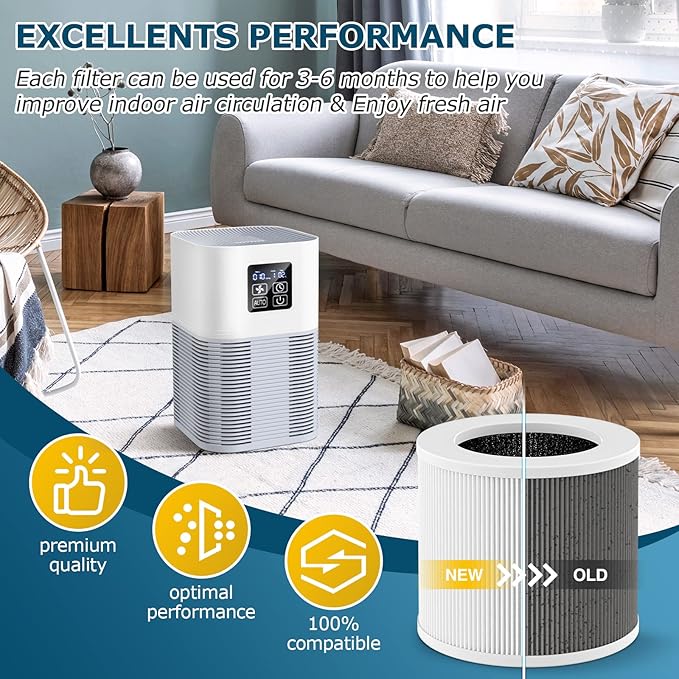 - 【3 Stage Filtra-tion】 The A1 replacement filt-er includes fine nylon primary filt-er layer, h13 grade true HEPA filt-er and activated carbon filt-er, 3 layer step help to absorbs 99.97% of fine particles down to 0.3 microns, get fresh air and comfortable space for your home