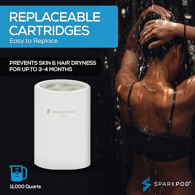 - REPLACEABLE CARTRIDGES: SparkPod’s new upgraded formula filters water to help with dry skin, rough hair and itchy skin. Enjoy 2-3 Months of filtered soft water per replacement Cartridge.