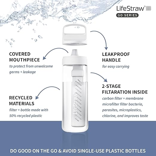 - LifeStraw Go Series is the ULTIMATE SIDEKICK. The BPA-Free bottle filters out nasties so you can fill up from airport bathrooms, a tap in Mexico, or a gas station while road-tripping