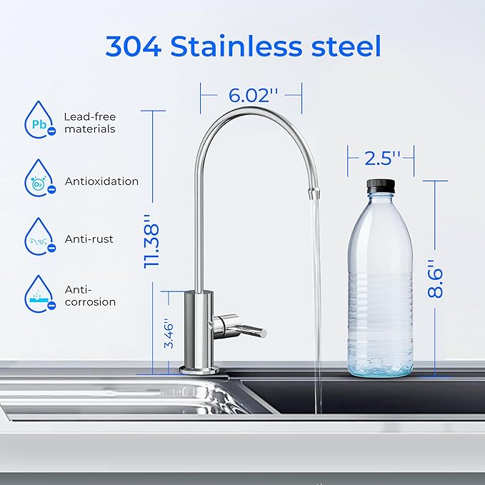- šš§ššš š«šššš ššš¬š¢š š§: The reverse osmosis faucet stem is integrated with the base for simple installation and the avoid of water leakage. Triple O-ring seals are used to avoid deformation of the faucet and breeding; This drinking water faucet inner is smooth and no rust occurred, thus, the drinking water is safe and clean. Please Note: This faucet can only be connected to PPE pipes.