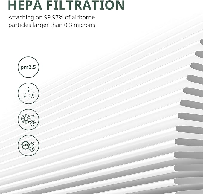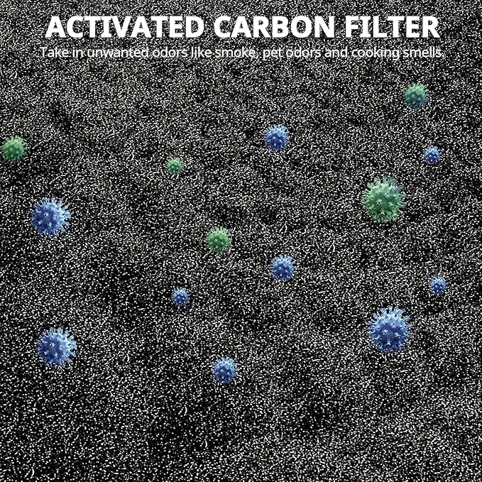 - 【4-LAYER FIL-TRATION SYSTEM】: Our air puri-fiers fil-ter MK-04 is designed with a 4-in-1 High-Efficiency System. Pre-Fil-ter, HEPA Fil-ter, Special Silver Ion Layer, and Activated Carbon Fil-ter. Collect the hairs, dander and others, attach to 99.97% of airborne larger than 0.3 microns, and take in unpleasant odors from smoke, cooking odors, and pet odors, and VOCs