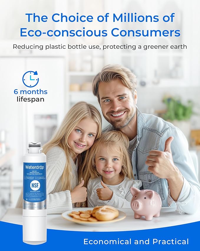 - [Authoritative Certifications] This Waterdrop WDS-F27 water filter replacement for Samsung refrigerators, trusted by American families, has been certified by NSF and IAPMO against NSF/ANSI standards 42, and 372 for effective reduction of 20 substances, offering outstanding filtration and high-quality water purification and bringing healthy drinking water.