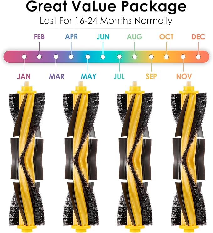 - 【Great Value Package】This package will come with 4 pieces of high quality roller brushes. It is a cost-effective choice to supplement the replacement robot vacuum accessories for your robot vacuum cleaner.