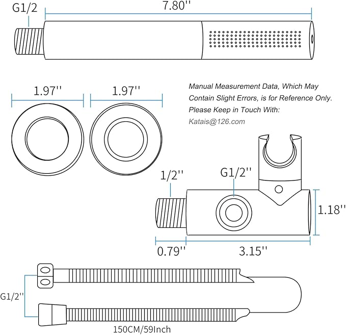 - The KATAIS 2 in 1 Function Hand held Shower head is the perfect choice for you. This innovative shower head handheld set boasts dual modes. 7 inch sprayer head and 59 inch hose, shower bracket all in a brushed gold finish