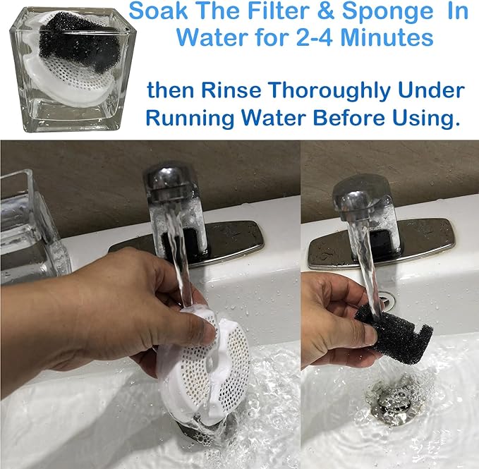 - Use tip 1:please soak the filter in water for 2 minutes and rinse it thoroughly under running water before use.