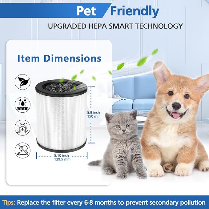 - 3-in-1 Filtration: The KJ80 Replacement Filter for Druiap & Muliap is 3-in-1 HEPA filtration systems including Ultra-fine Pre-Filter, HEPA Filter, and Activated Carbon Filter. kj80 hepa filter more effectively aiding in the removal of 99. 97% of airborne particles down to 0.1 microns in size, 360ยฐ rotating filter air, creating fresh and purified air for you and your family