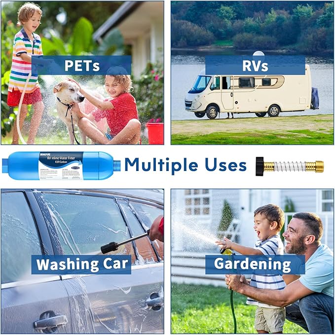 - Many Uses: The hose filter can be attached to any standard water hose for safe drinking water. It is great for RVs camping, gardening, planting, car washing, household, pool, marines, boats, camper, pets, trailer, drinking water fountains