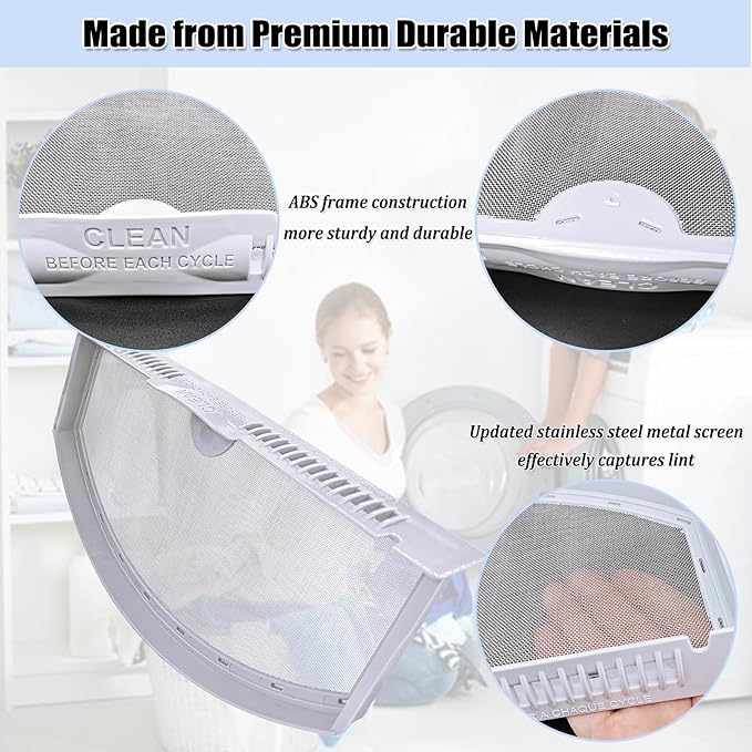 - PREMIUM QUALITY: The Upgrade dryer Lint Screen replacement part is made from premium durable materials (stainless steel metal screen & ABS frame construction), effectively captures lint and other debris. Rigorously tested to meet original manufacturer specifications and ensure long-lasting and effective performance for your dryer.