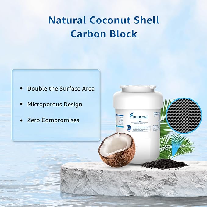 - 【Premium filter material】Here at Filterlogic, we adopt 100% natural coconut shell carbon block containing twice the surface area and more micropores than an inferior carbon block.