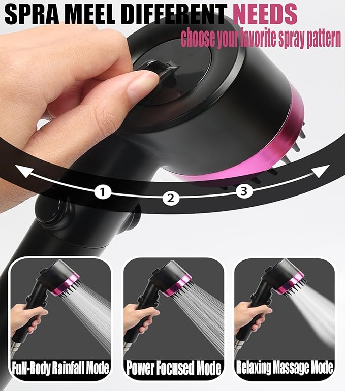 - ▶【Handheld Shower Head Set:】: The shower heads set high packages include necessary accessories ,1*multifunctional high pressure Handheld Shower, 59 Inch Hose, 3* Extra filters(one is spare), 1*adjustable mount holder ect. Get your shower head installed in minutes without asking for help! Let your families enjoy massage and SPA.