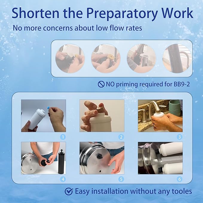 - 【Durable Life Span】: To ensure your machine's performance is at its peak, we recommend replacing the white fluoride filter every 1,000 gallons per pair and the black carbon filter every 6,000 gallons per pair (depends on the quality of the tap water you are filtering). ⭐Please note that you have to totally submerge the carbon filter about once a week in order for the drip system to siphon properly.
