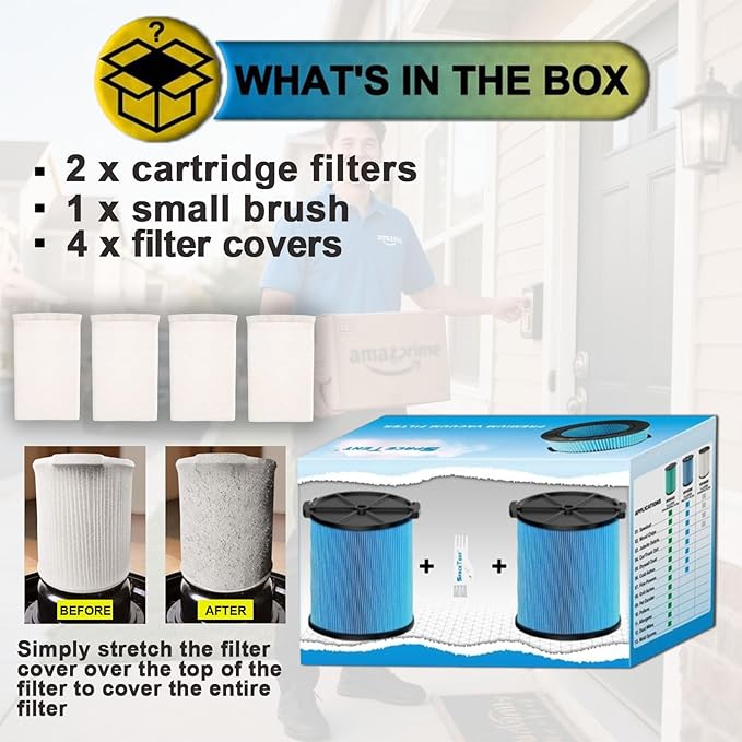 - INCLUDES 2 VF5000 3-Layer Fine Dust replacement filters, 4 filter covers and 1 small brush.