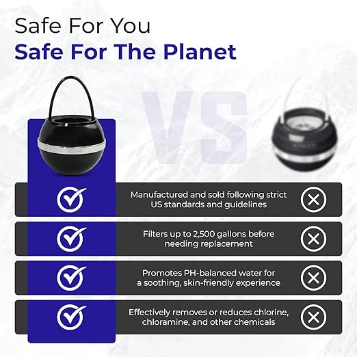 Crystal Quest Bath Ball Water Filter for Bathtub - 3-Stage Filtration, Removes Chlorine, Chloramine & Byproducts, 2,500 Gallons, BPA Free, pH Balanced Water, Fits Most Tubs, Easy Install - Black