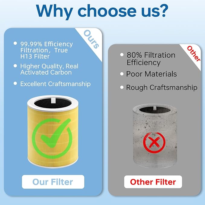 - HUGH-EFFICIENCY FILTRATION: The Core 600s-p replacement filter provides triple protection, including a fine primary filter, an H13-grade True filter, and an activated carbon filter. It removes invisible threats like pet dander, pollen, and smoke. 99.97% purification efficiency isn't just a number; it's a gentle protection for families with babies and children.