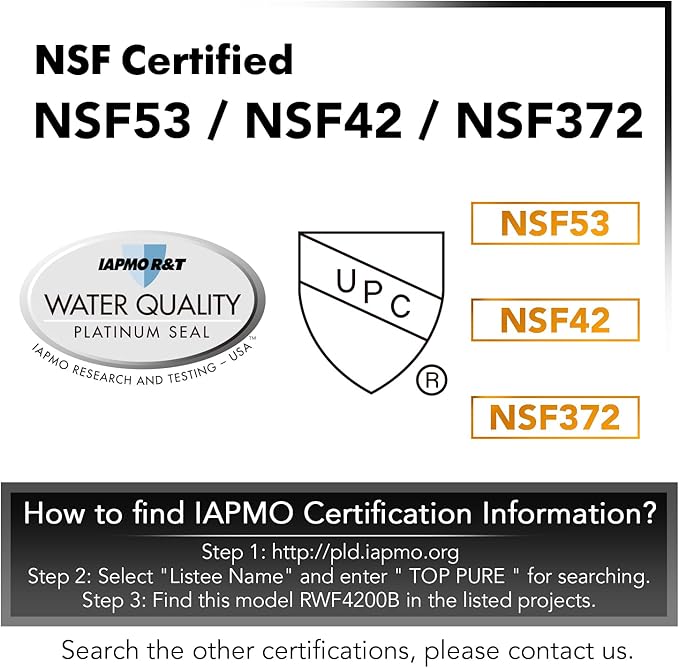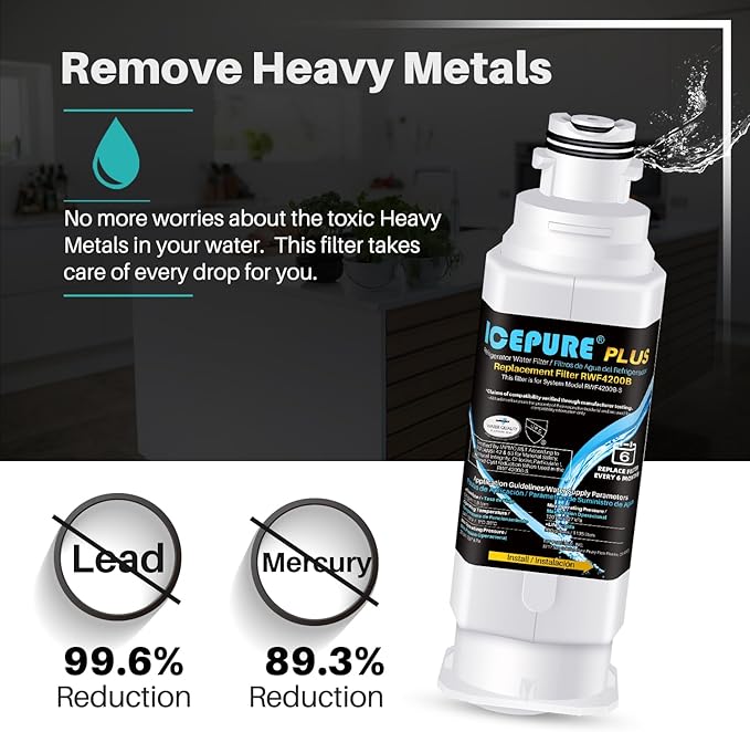 - Why ICEPURE PLUS: Pursuing Excellent Quality. This filter is NSF/ANSI 53 certified by WQA and IAPMO for Heavy Metal reduction. This filter reduces 99.6% Lead. This filter is also certified for NSF/ANSI 42 low lead, European EC-1935/2016, ROHS,REACH, BPA-Free,TUV, and Australian Water Mark. You never compromise on product quality for your loved ones, we either.
