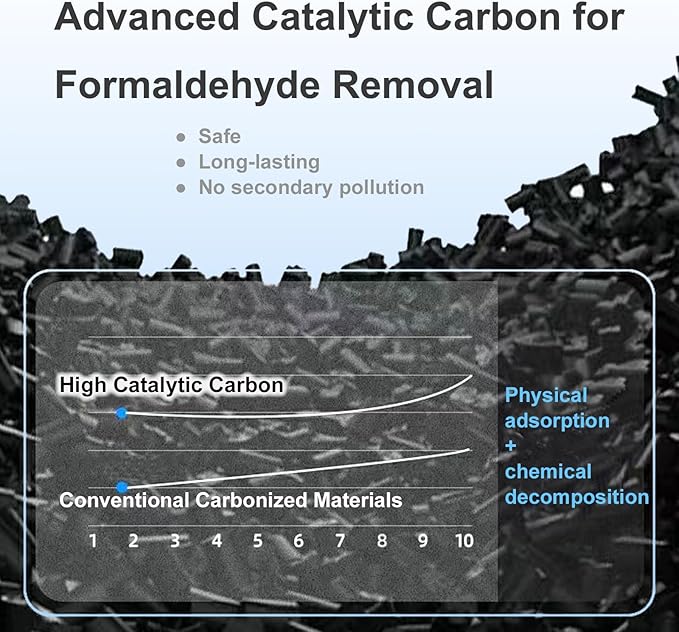 - 【ODOR ELIMINATOR】- Activated carbon filter helps reduce unwanted odors from pets, smoke, cooking fumes, and harmful VOC's emitted from a variety of household products and chemicals.