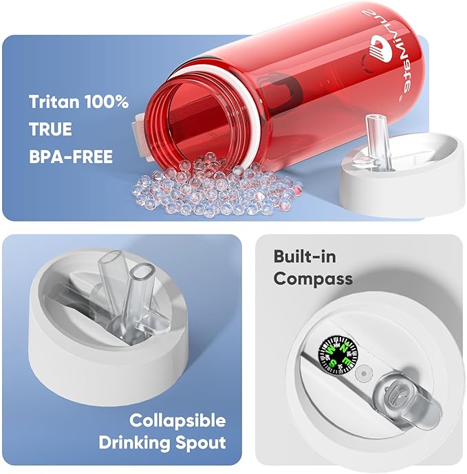 - [Built-in Compass] - Perfect for camping and outdoor exploration, the water bottle is equipped with a built-in compass on its top, helping you navigate and stay oriented during your adventures.