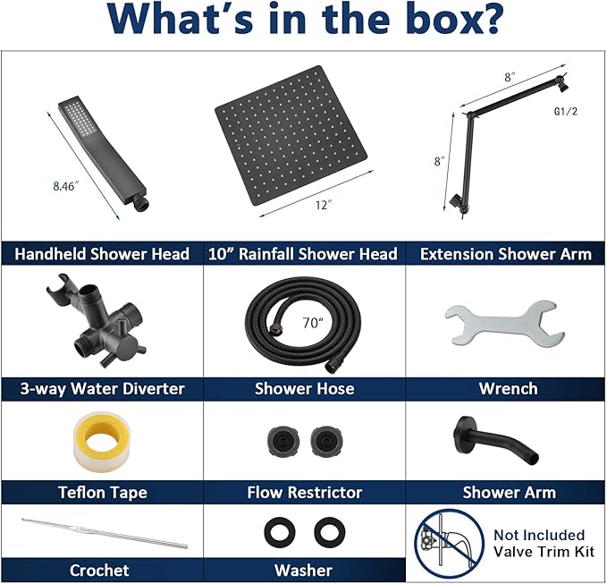 - 12 INCH SQUARE RAIN SHOWER: Experience total body warmth with our 12 inch square rain shower head, designed for complete coverage; Enjoy hassle-free maintenance with our clog-resistant silicone outlets