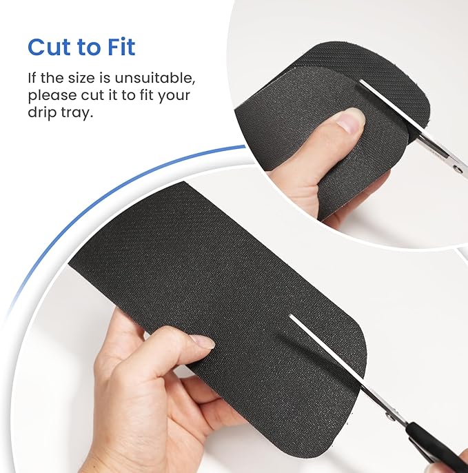 - Cut to Fit: 3.1*8.2 inches, this drip mat can fit most refrigerator water trays. If the size is unsuitable, you can use scissors to cut the drip catcher tray to fit your refrigerator. It's also easy to install and replace, simply remove the old mat and replace it with the new one.