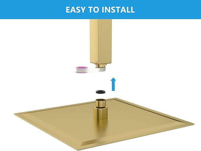 Lordear Gold Rainfall Shower Head 12 Inch Square Rain Shower Head Solid Ultra Thin 304 Stainless Steel Fixed Rainshower Head with Self Cleaning Nozzles