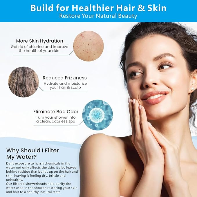 - RAINFALL SHOWERHEAD FILTER - Most filters for showers eliminate some chemicals for a short time, but do nothing to restore the damage done to your hair, nails and skin. Our 18 stage Health Filter reduces chlorine, pesticides, pharmaceuticals, dirt, odors, helps control scale buildup plus restores what your hard, chemical filled water did to your hair, skin and nails! give you the cleanest water source.