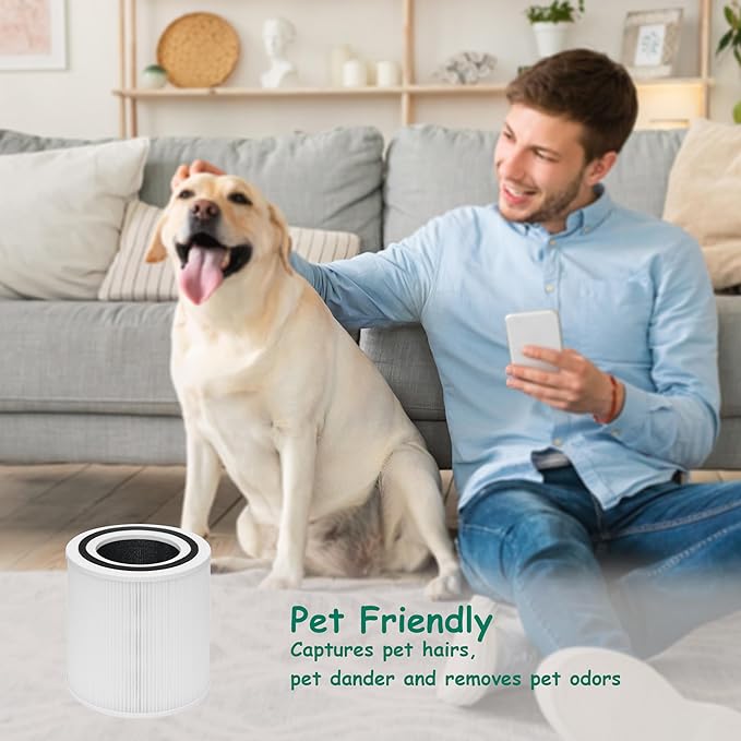 - HIGH EFFICIENCY - Pre-filter traps large particles in the air like hair, pet fur, pet dander and more. The premium activated carbon filters can efficiently absorb terrible odors including Pet odors, Smoke odors, Cooking odors, Harmful VOC's