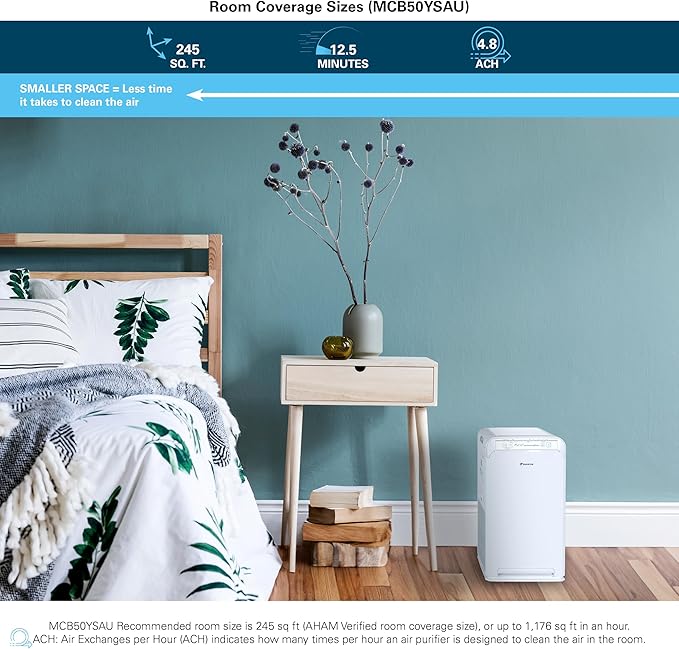 Daikin MCB50YSAU Room Air Purifier for Home, HEPA, Activated Carbon, Pre-Filter and UVC LED Light, Zero Ozone Product, CARB Certified, 10.5 x 10.5 x 19.5 in