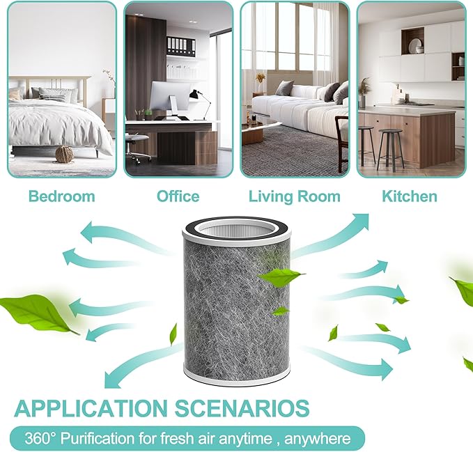 - 👍【3-in-1 Filtration】Comprends H13 True HEPA Filter, High Efficiency Activated Carbon Filter and the Pre-Filter, help reducing 99.97% of airborne particles at large, small & micro-sized 0.1–0.2 microns, filtering volatile organic compounds (VOCs), ideal chice for households with pets, cooking and smokers. Effectively improving indoor air quality.