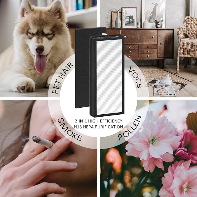 - Superior Filtration: Made with genuine H13 HEPA material, our filter captures airborne particles as small as 0.3 microns and effectively absorbs substances such as pollen, pet dander, dust, smoke and odors