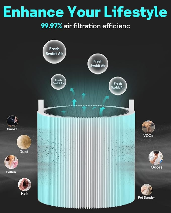 - 【SUPERIOR QUALITY】: The 511 filter effectively cleans a remarkable 99.97% of particles as small as 0.1 microns, and cleans pet dander, pollen, and dust. The activated carbon filter efficiently cleans household odors from smoking, pets, and cooking fumes