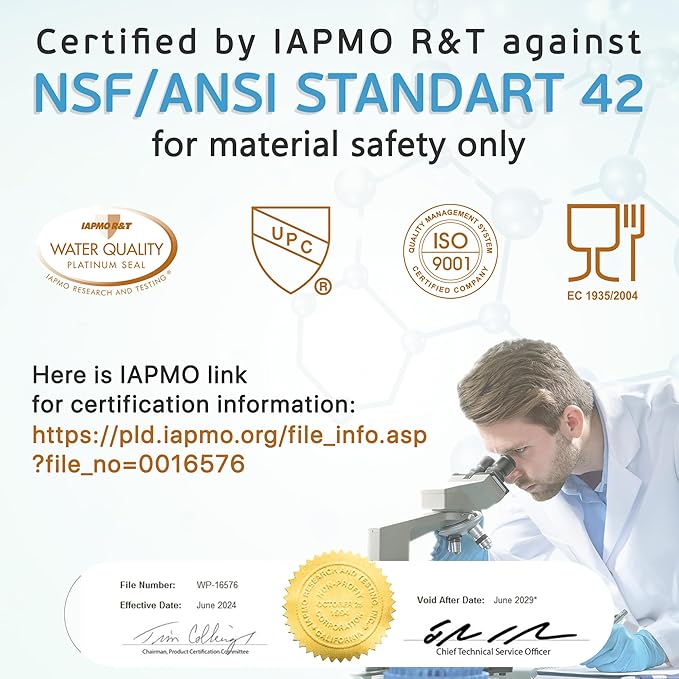 - š CERTIFIED SAFETY These cartridges are tested & certified by IAPMO R&T against NSF/ANSI Standard 42 for material safety, ensuring they meet the highest safety standards. Made from premium food-grade 100% polypropylene, they feature unique melt-blown technology that prevents the creation of fiber shedding, eliminating any risk of re-contaminating water. Designed for long-lasting performance, these filters offer reliable & efficient filtration for the whole house, maintaining the purity of water