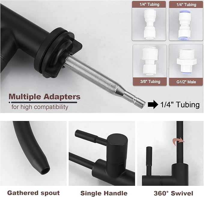 - 【Lead-free Drinking Water Faucet】It delivers filtered water on demand, saving money on bottled water! 360° swivel spout avoids space constraints for greater flexibility. We also offer a variety of connectors for use with most REVERSE OSMOSIS and water filtration systems.