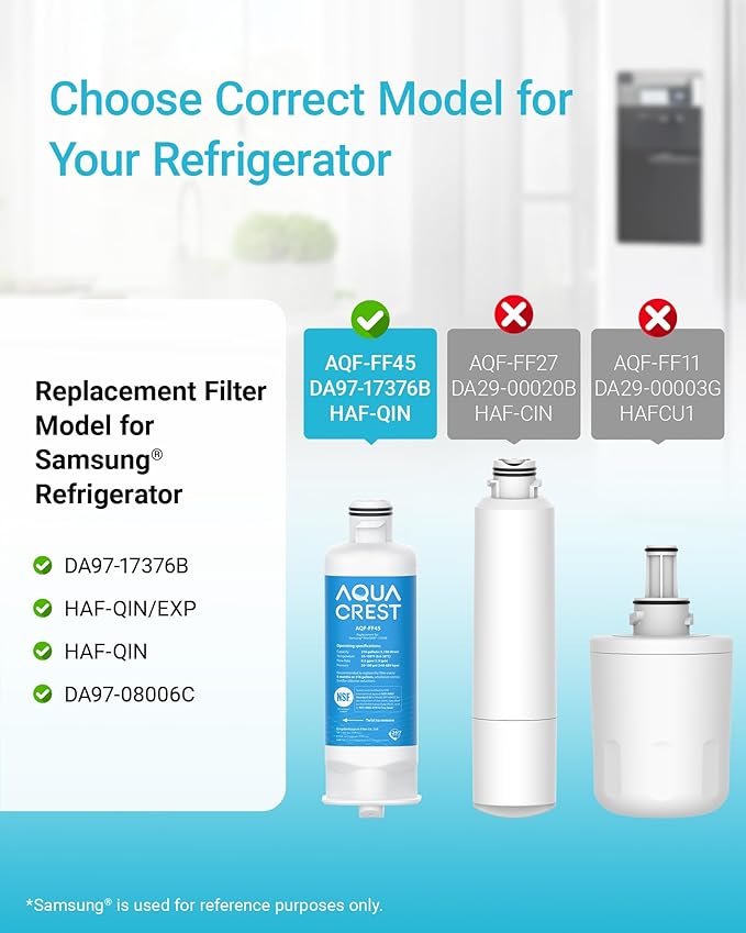 - Replacement for filter models Samsung DA97-17376B, DA97-08006C, HAF-QIN/EXP, HAF-QIN, PP-RWF4200A-S, GF-841, CF-17, WD-F45, WS645A, FL-RF45, MB-F45, RWF4200A.