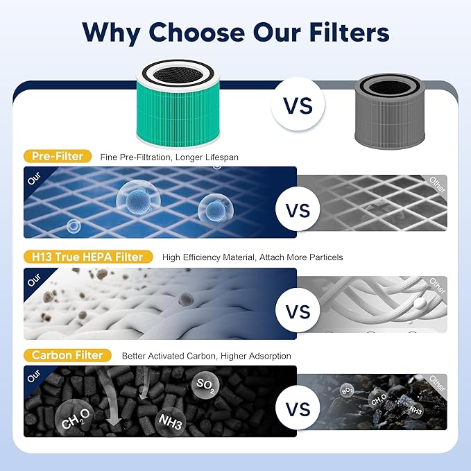 - π―-ππ‘-π ππππ§π₯ππ§ππ’π‘ - Our advanced core 300 filter replacement for levoit air purifier adopts 3-Stage High Efficiency Filtration System ( β Ultra-fine Nylon Pre-Filter β‘H13 Grade True HEPA Filter β’Activated Carbon Filter with ARC Formula) to take away 99.97% of substances as small as 0.03 microns, automatically improving air quality and promoting better health and well-being for you, ideal solution for homes with pets, smokers, open layout kitchens
