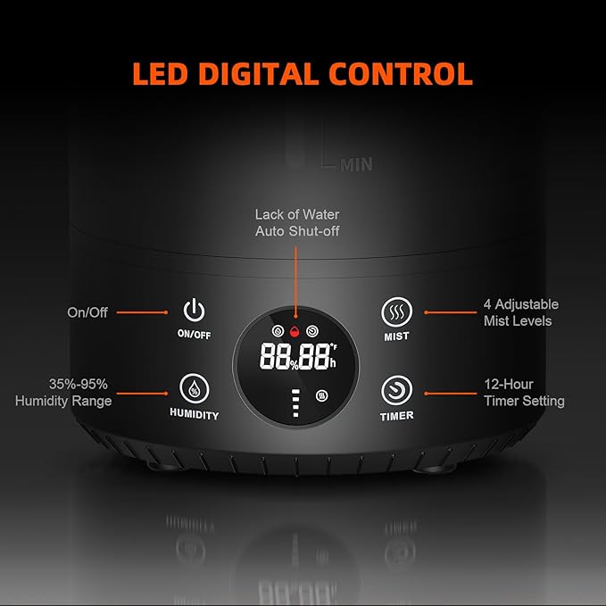 - ššš šš¢š¦šš« šš®š¦š¢šš¢šš¢šš« ššØš« ššš«š š ššØšØš¦: This humidifier with hose has a timer that is timed in 1-hour increments 1 to 12 hours, the 6L indoor humidifier tank can last up to 24 hours, and 450 ml/h max mist output can cover rooms and grow tents, highly recommended for office, bedroom, home, basement.