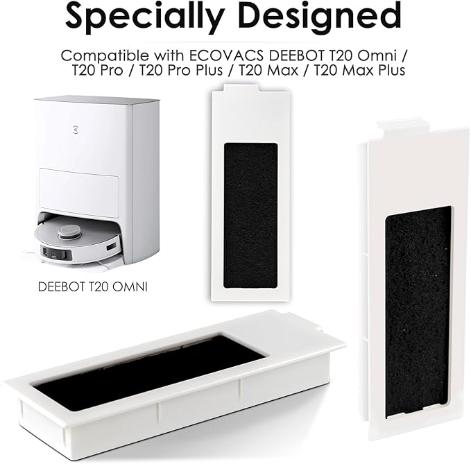 - 【Perfect Compatibility】The replacement hepa filters are specially developed to be compatible with ECOVACS DEEBOT T20 Omni / T20 Pro / T20 Pro Plus / T20 Max / T20 Max Robotic Vacuum Cleaner. Please double confirm your model before the order. Please also be noted that: This is not an OEM product. Any use of the brand name or model name is intended solely to demonstrate compatibility of this product.