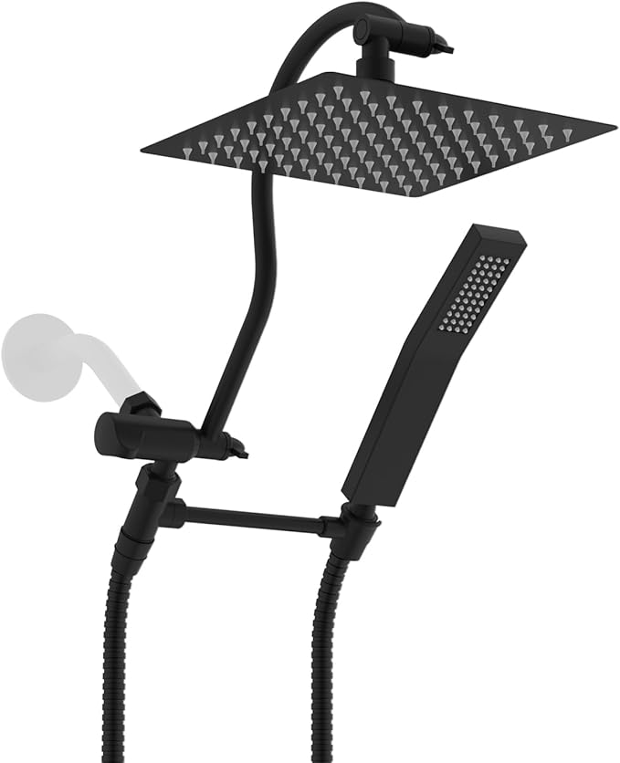 - Upgraded 3-Way Diverter Valve & Easy Installation: This shower head combo is effortless to install—no tools or plumbers are needed. The 3-way diverter allows you to use either the shower head or rainfall showerhead alone, or both simultaneously for a versatile experience. Unlike ordinary diverters that are separate from the extension arm and prone to leaks and shaking, ours is designed for a seamless, secure connection that ensures leak-free and stable performance