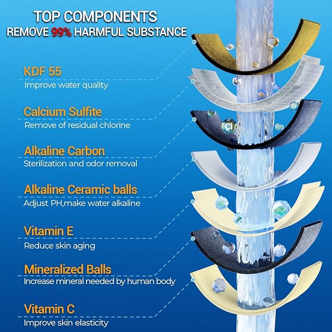 - PREMIUM CARE: Experience spa-like luxury at home with our 20-stage shower head filter, which provides clean soft water for your body. Say goodbye to dry, itchy skin, dandruff, and eczema, and hello to improved skin, hair, and nail condition!